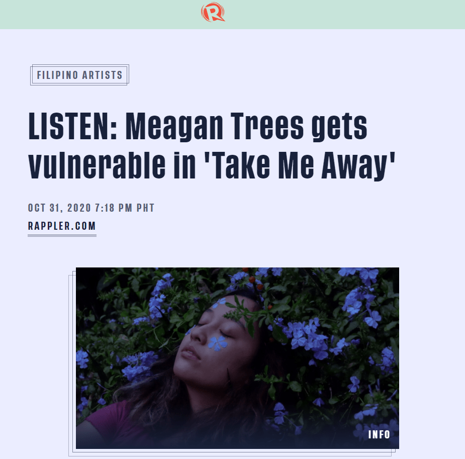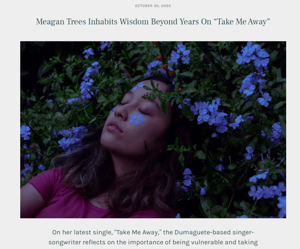 Take Me Away gets featured on Rappler and Lilystars Records Featured by Meagan Trees, posted in News Screenshot taken from Rappler Click here for the full article Screenshot taken from Lilystars Records click here for the full article Listen on spotify here Tweets by meagantrees follow me on instagram Share this: Share on X (Opens in new window) X Share on Facebook (Opens in new window) Facebook Related